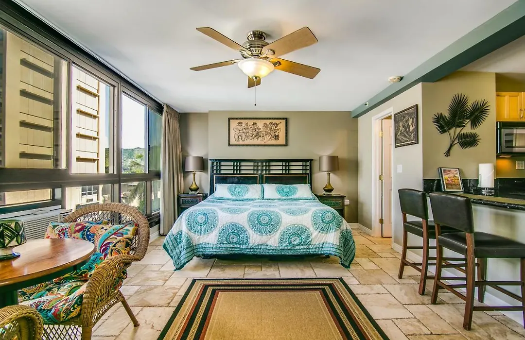 شقة Mountain View Studio - Steps To Waikiki Beach! توفر اقامة مريحة في مدينة هونولولو لـ4 ضيوف. المكان يمتلك 1 غرفة نوم و1 حماما وكذلك شرفة.